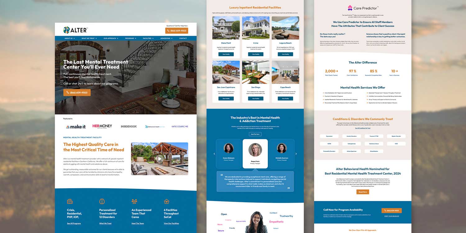 I teamed up with Alter Behavioral Health’s fearless CEO and a crack squad of in-house designers to craft a website so reassuring, it practically whispers, “Relax, we’ve got you.” From the first session to the final breakthrough, the sleek, user-friendly platform radiates calm and confidence—because finding help should never feel overwhelming.